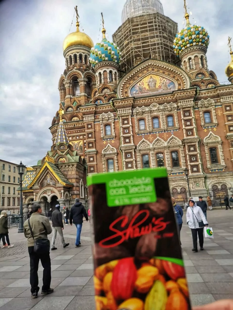 Barra de Chocolate con Leche 41% cacao de @cacaoterra en la Iglesia del Salvador sobre la Sangre Derramada o Iglesia de la Resurrección de Cristo, en San Petesburgo, Rusia 🇷🇺 💙¿Dónde llevas el sabor de chocolates #Cacaoterra? Chocolate/Cacao salvadoreño en diferentes lugares del mundo 🍫🌎 ✈️ Usa el hashtag #PulgarcitoViajero, o envíanos tus fotos 😉 Si quieres ver donde hemos llegado, haz click en #PulgarcitoViajero 😎