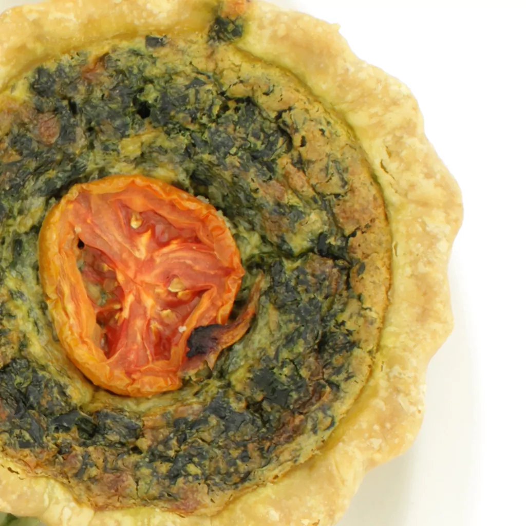 Quiche de espinaca fresca🌿 con queso 🧀 en un rico crust 🥧, acompañado de ensalada fresca🥗. También hay de cebolla caramelizada con tocino🧅🥓, y de chile morrón y elote 🌽🌶️. Ordena para llevar en Shaw’s Basilea, Masferrer y Santa Elena (de 8am a 8pm). También puedes ordenarlos por delivery con @hugoapp.sv y @gourmetexpress_sv.