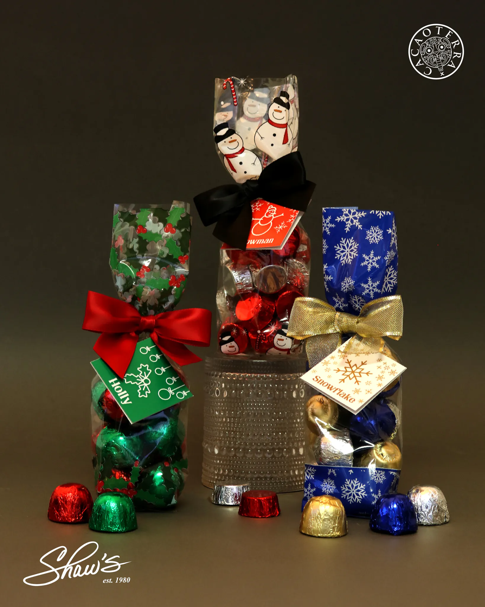 - ❄Snowflakes: 16 Bombones de chocolate rellenos – Clásico con Menta, Mochaccino y Clásico.
