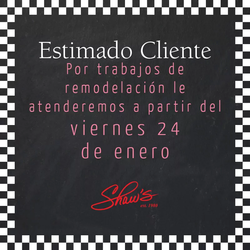 Shaw’s Masferrer estará cerrado a partir del lunes 20 a jueves 23 de enero, agradecemos su comprensión 🙂