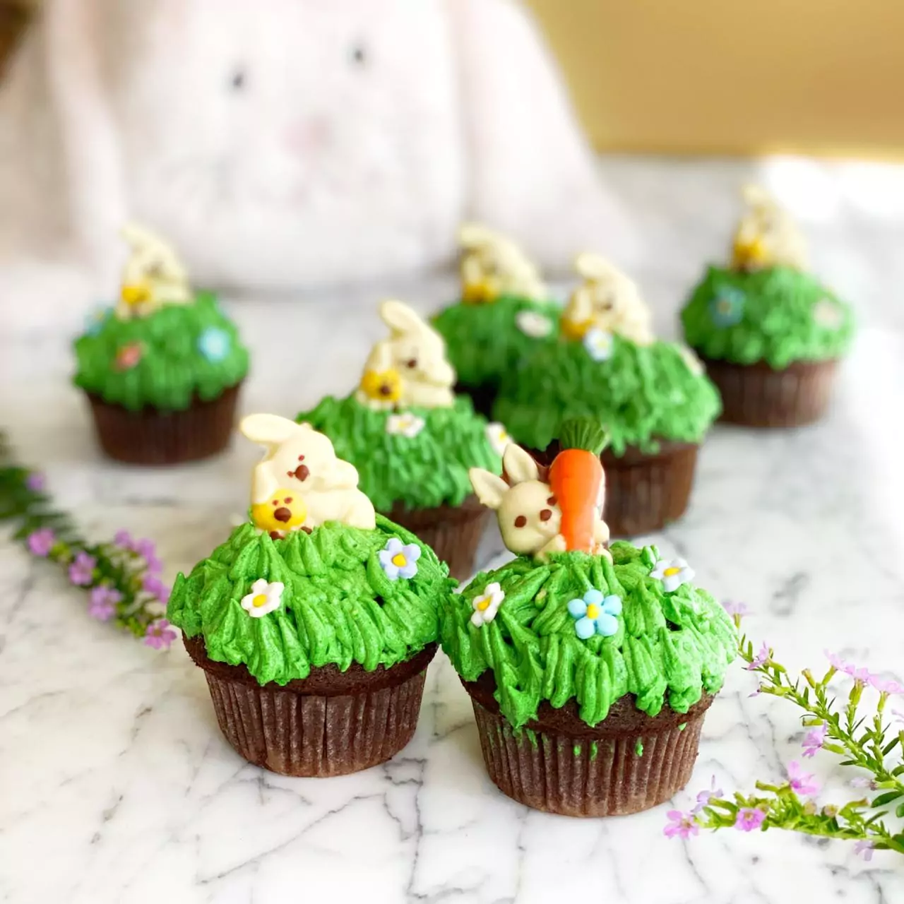 Summer cupcakes 🌼 Cupcakes de chocolate o vainilla con betún y decoración de figuritas de chocolate.🧁