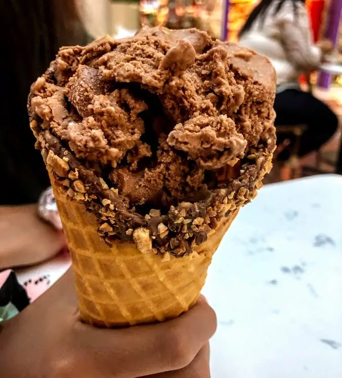 Gelato Romano de Yogurt Frutas del Bosque y Fruta Lampone en nuestros conos waffles artesanales.