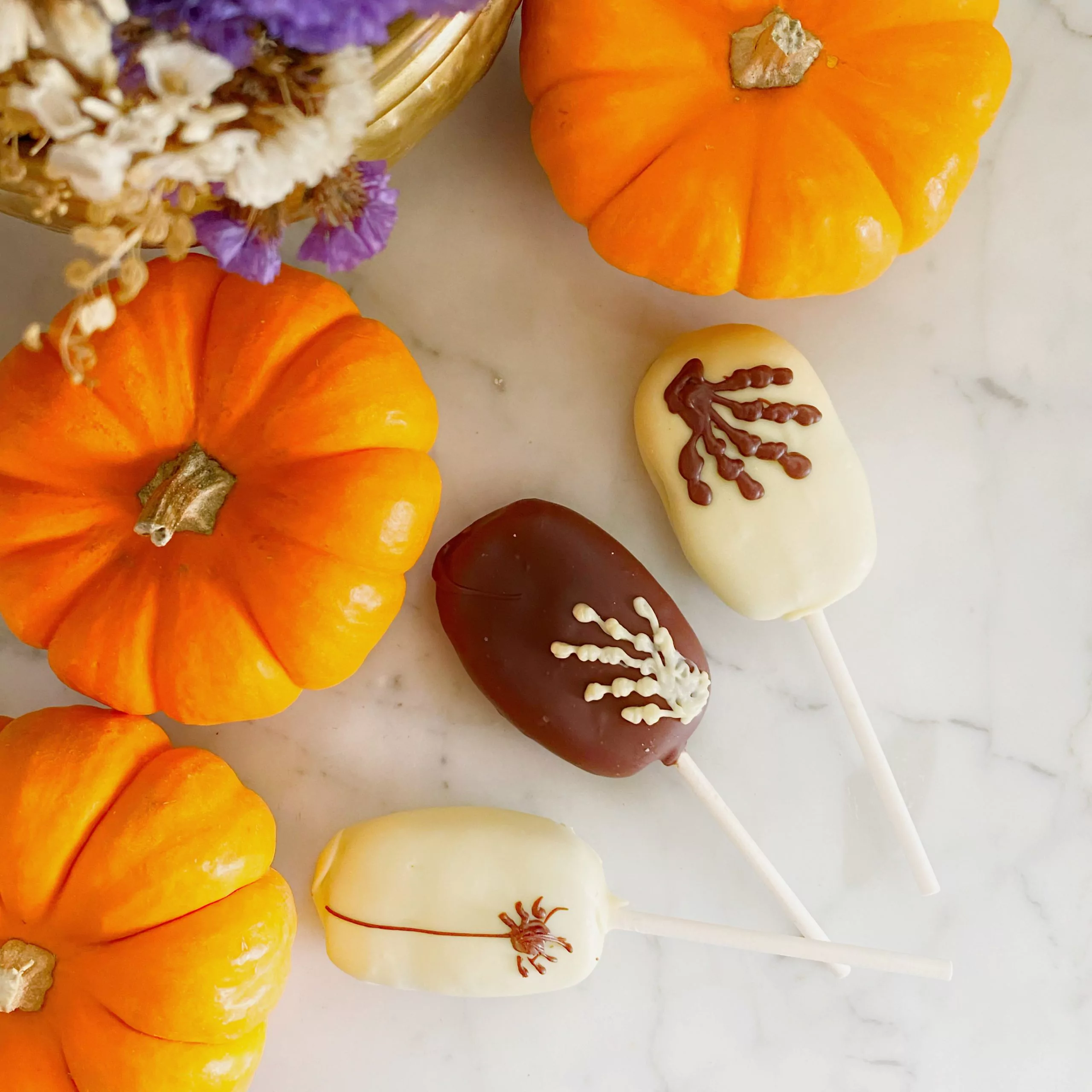 XBrownie Pops 🎃👻 Paletas de brownie recubiertas en chocolate oscuro 51% cacao o blanco 30% cacao.🍫